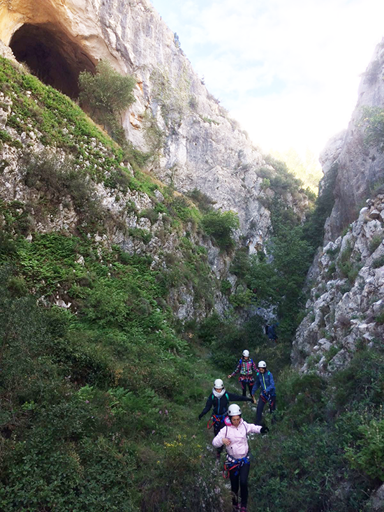 La actividad consistía en iniciar al alumnado de este ciclo de Florida Universitària en la práctica de actividades recreativas y de conducción en el medio acuático y terrestre en el ámbito de los barrancos.